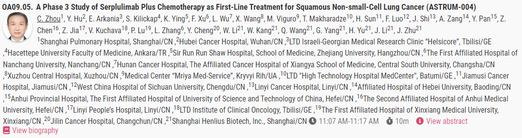 2023 WCLC | 复宏汉霖H药汉斯状®鳞状非小细胞肺癌国际多中心III期临床数据入选口头报告